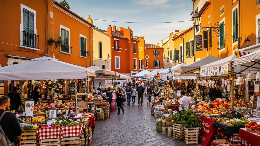 Classé 5ème en 2024, ce marché catalan mêle art et gastronomie grâce à des producteurs exposant leurs récoltes comme des œuvres. Des toiles de peintres locaux décorent les étals de cerises IGP et d’huile d’olive AOP.
